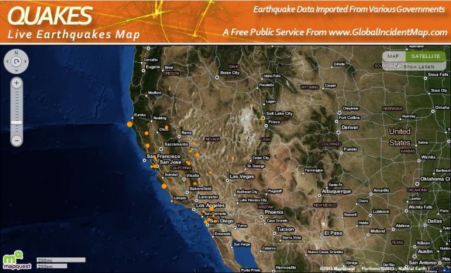| Friday October 18 2013, 19:35:09 UTC | 2 hours ago | Northern California | 1.7 | 12.3 | USGS Feed | Detail | |