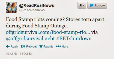 The attached story from Beforeitsnews reporter Susan Duclos examined whether or not the recent EBT 'glitch' was actually a 'dry run' for collapsing the entire system allowing Barack Obama to declare martial law across America to deal with the problems outlined in the tweets below. The brand new video below from Ananiasshow shares why many people believe that next time, it won't be a 'test'. Will 'next time' be the last time before a 'New World Order' comes into being? Time is ticking on America...