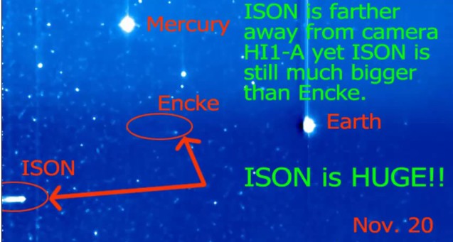 The 2nd video below shows the size of Comet ISON compared to Comet Enke. ISON DWARFS Enke. ISON is HUGE!