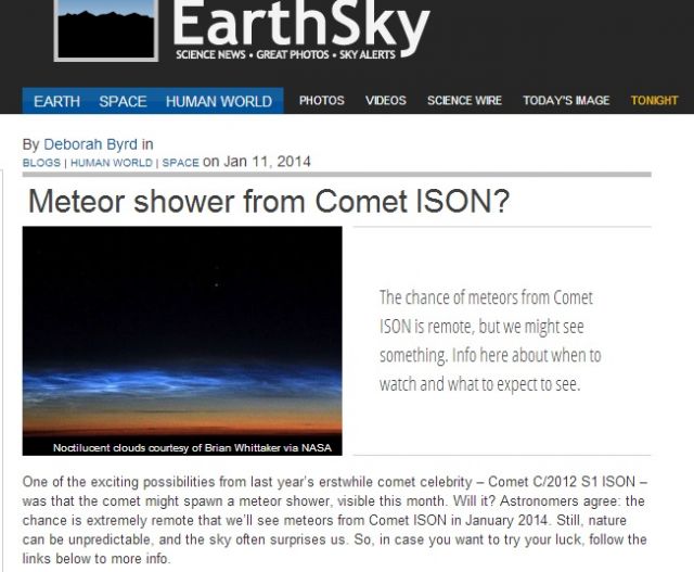 Read more about ISON Meteor Shower Just Started According To Before It's News Reader